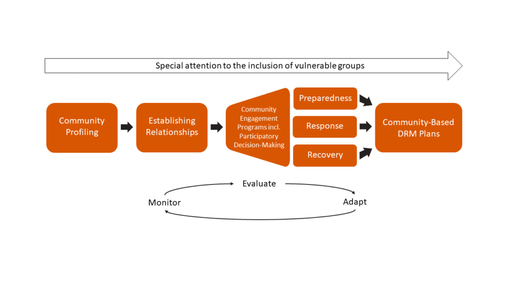 Highly tailored recommendations, coherently structured according to the community engagement process and disaster management phases, are presented as a result of the report. They cover vital areas like two-way communication, relationship building, participatory vulnerability assessments, inclusive citizen training programs, collaborative planning mechanisms, supporting grassroots initiatives, and proactively engaging vulnerable groups.