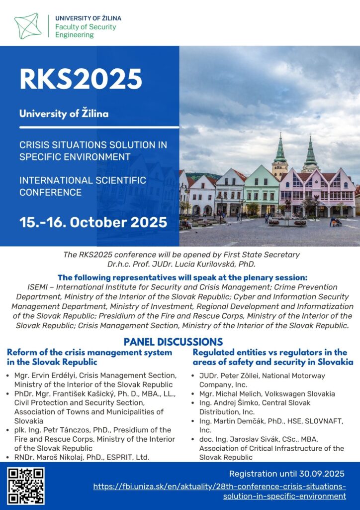 PANTHEON Project presented at RKS2025 conference in Slovakia The Faculty of Security Engineering at the University of Žilina organized the 28th international scientific conference Crisis situations solution in specific environment, which took place in Žilina on October 15-16, 2025.  The aim of the conference was to present new trends, prevention procedures, experience and good practice,